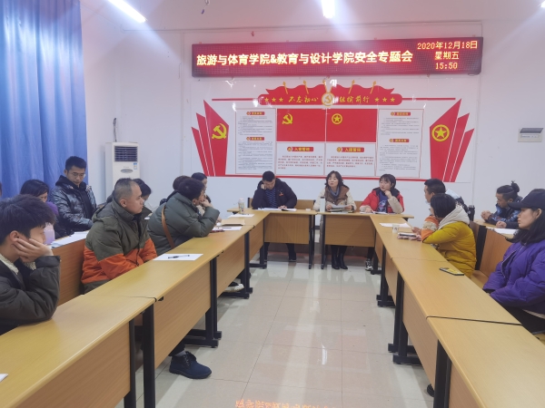 2020年12月18日,教育与设计学院、旅游与体育学院在博学楼SJ1207召开安全专题会,学院全体教职工参加会议,会议由院长吴智勇主持。